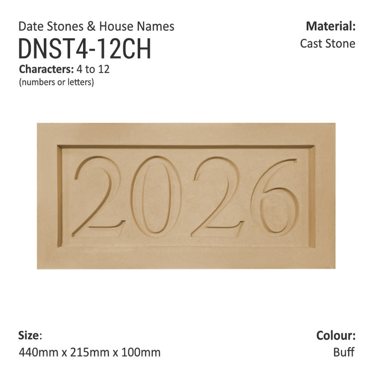 Make your building unique with Cast Stone Date Stones and House Names. These stone decorations are bespoke and hand-made. These Number Stones are wonderful made-to-order cast stone architectural elements.