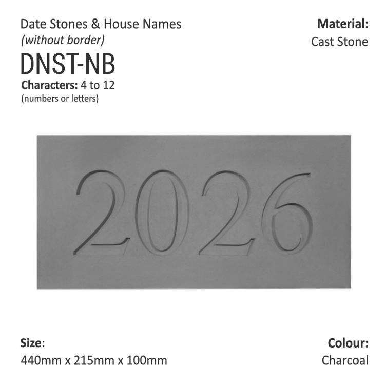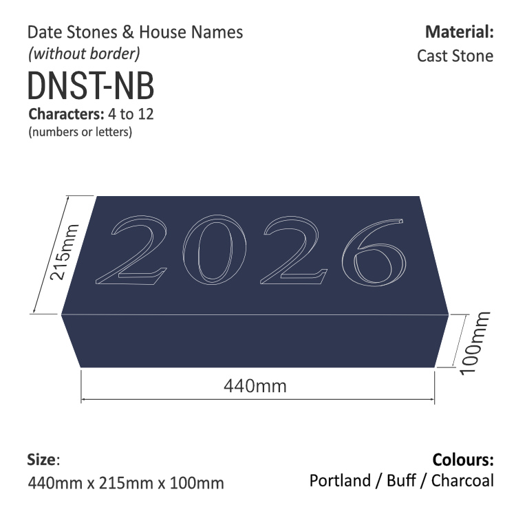 The price is for a 4-character (numbers/letters) Date/Name Stone (such as ‘2022’), size 440 mm x 215 mm x 100 mm